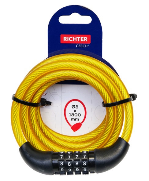 - Zámok lankový kódovací RL567 8x1800mm žltý