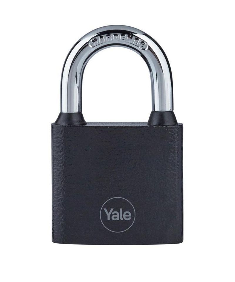 Visiaci zámok Yale so šírkou 38 mm so štandardnou úrovňou zabezpečenia. Železná konštrukcia disponuje tvrdeným strmeňom, ktorý zabraňuje prerezaniu. Odolný zámok testovaný na 10 000 cyklov (otvorenie a zatvorenie) pre optimálny výkon. Balenie obsahuje 3 ks kľúčov.