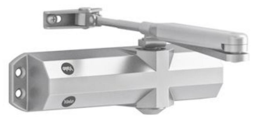 - Zatvárač dverí Yale DC4000 EN 2/3/4, so závesom a paralelným plechom, strieborný