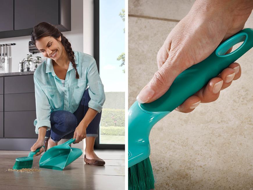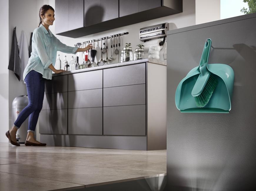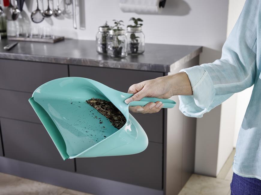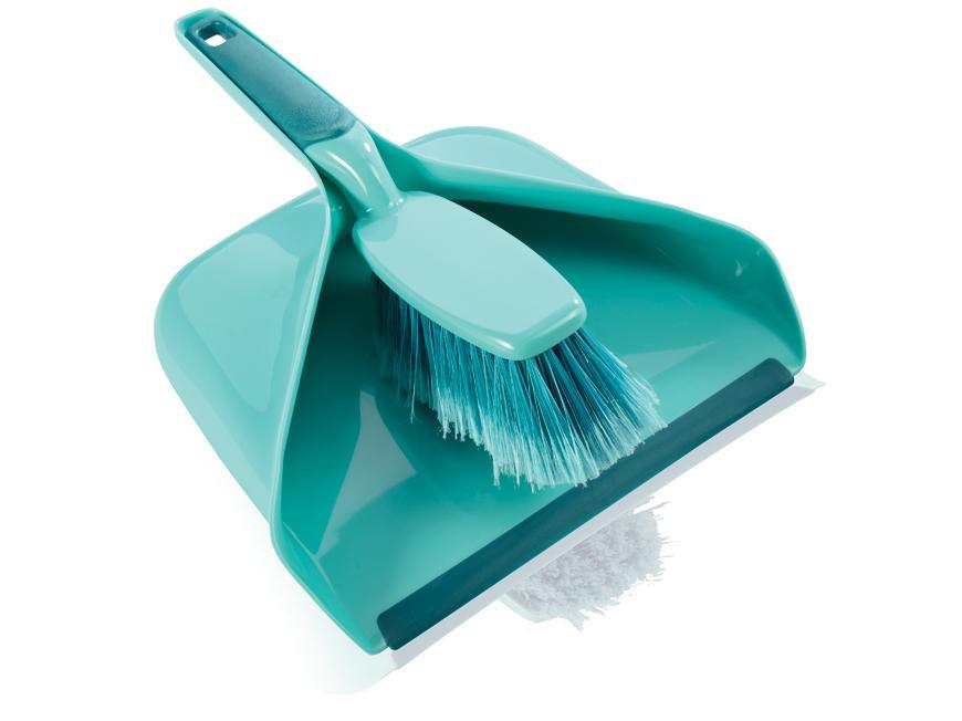 Zmetáčik s lopatkou. Rozmery: 26x30x9 cm. Farba:tyrkysová, materiál:plast.